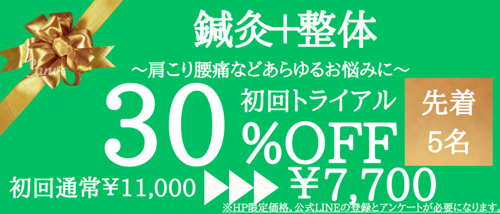 鍼灸/整体/マッサージ/カッピング(吸い玉)/リンパマッサージ/足つぼ整体など